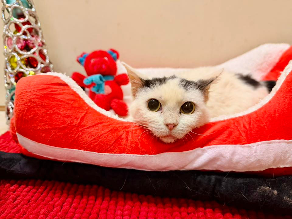 This handsome little guy is neutered, up to date on vaccines, and ready to find his forever home! Snowball is as sweet as his name — calm, cuddly, and always ready for a nap. He’s the perfect snuggle buddy who melts right into your heart (and your arms!).